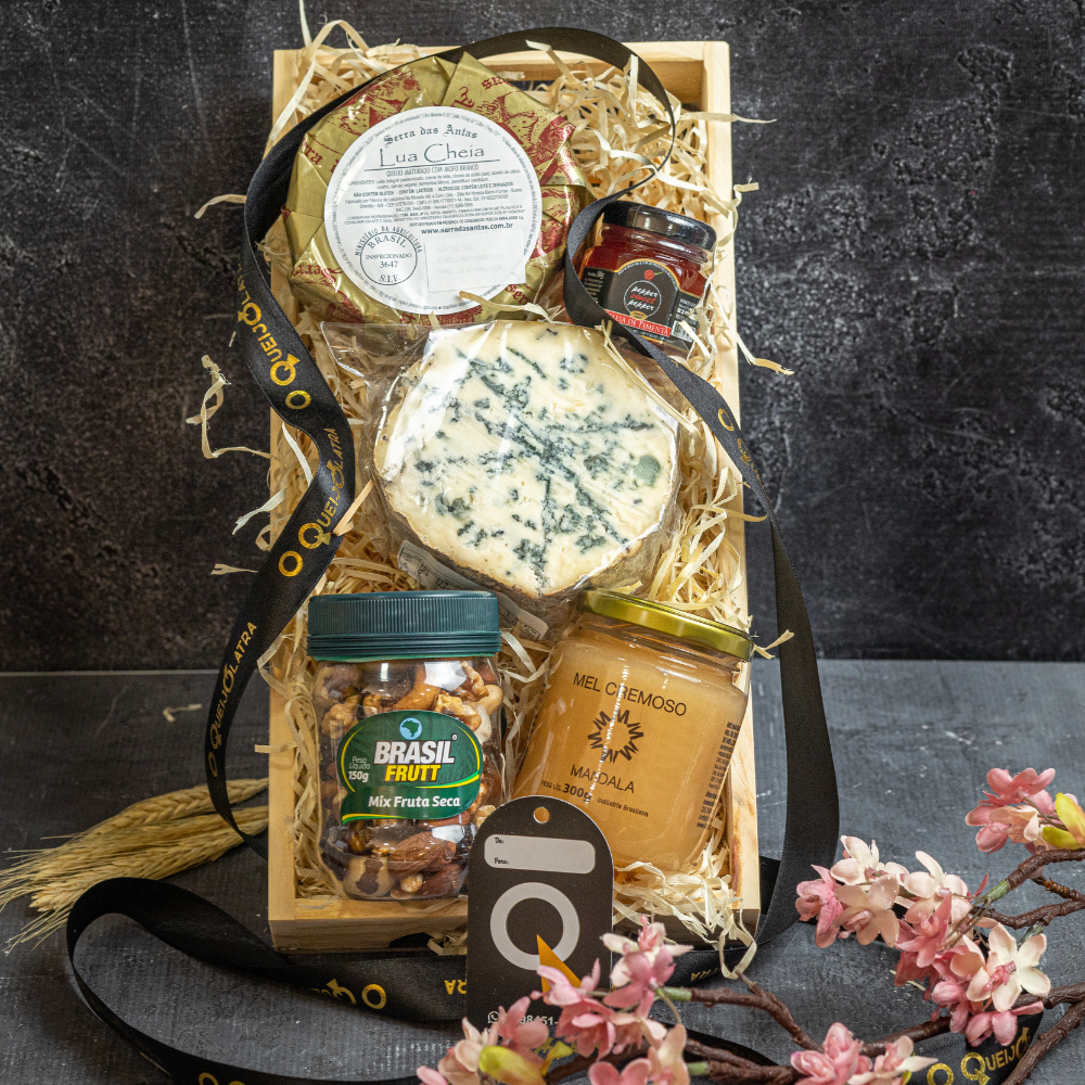 Cesta De Presente 2 Queijos Cremosos + Mel Cremoso + Nuts + Geléia